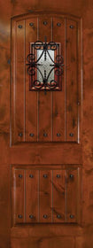 WDMA 32x96 Door (2ft8in by 8ft) Exterior Cherry IMPACT | 96in 2 Panel Arch V-Grooved or Knotty Alder Door with Speakeasy