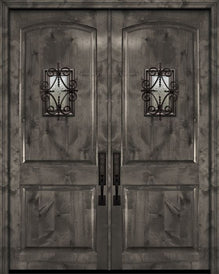 WDMA 64x96 Door (5ft4in by 8ft) Exterior Knotty Alder 96in Double 2 Panel V-Grooved Estancia Alder Door with Speakeasy Attributes Table