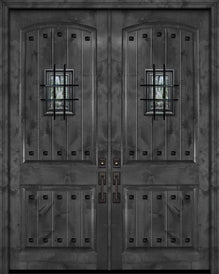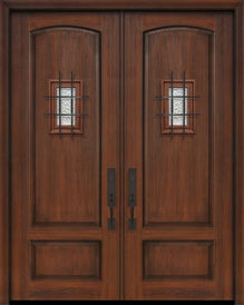 WDMA 64x96 Door (5ft4in by 8ft) Exterior Cherry IMPACT | 96in Double 2 Panel Arch V-Grooved or Knotty Alder Door with Speakeasy