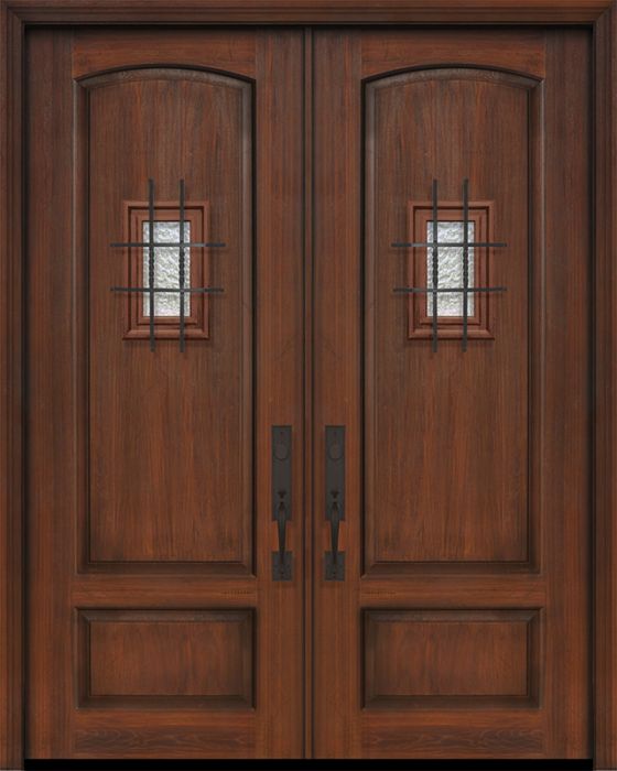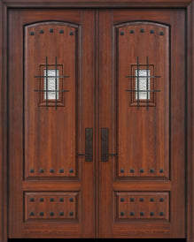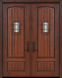 WDMA 64x96 Door (5ft4in by 8ft) Exterior Cherry IMPACT | 96in Double 2 Panel Arch or Knotty Alder Door with Speakeasy Attributes Table