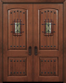 WDMA 64x96 Door (5ft4in by 8ft) Exterior Knotty Alder 96in Double 2 Panel Arch Door with Speakeasy / Clavos