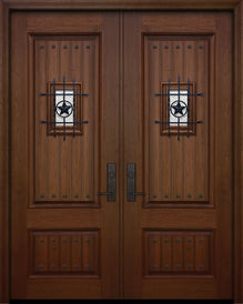 WDMA 64x96 Door (5ft4in by 8ft) Exterior Mahogany IMPACT | 96in Double 2 Panel Square Door with Speakeasy