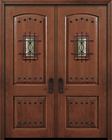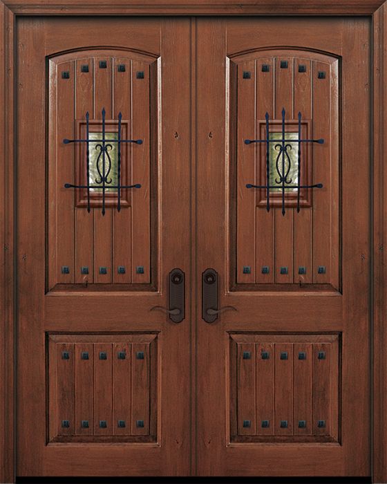 WDMA 64x96 Door (5ft4in by 8ft) Exterior Knotty Alder IMPACT | 96in Double 2 Panel Arch V-Groove Door with Speakeasy / Clavos
