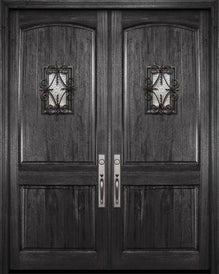 WDMA 72x96 Door (6ft by 8ft) Exterior Cherry Pro 96in Double 2 Panel Arch Door with Speakeasy / Clavos Attributes Table