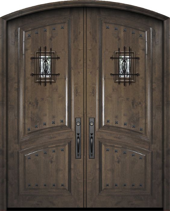 WDMA 72x96 Door (6ft by 8ft) Exterior Knotty Alder 36in x 96in Double Arch Top 2 Panel Estancia Alder Door with Speakeasy / Clavos