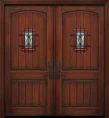 WDMA 84x96 Door (7ft by 8ft) Exterior Swing Mahogany 42in x 96in Double Square Top Plank Estancia Alder Door with Speakeasy