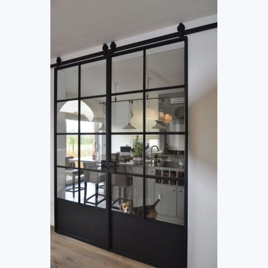 WDMA Modern design interior iron frame sliding door tempered glass steel insulated sliding barn door