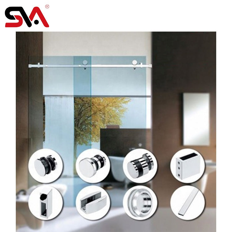 New Design Fashion Chrome Finish Stainless steel Hardware Alloy Bath glass door sliding system on China WDMA
