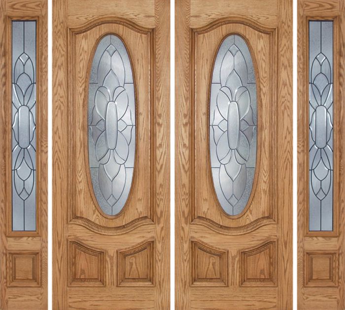 WDMA 100x96 Door (8ft4in by 8ft) Exterior Oak Dally Double Door/2side w/ BO Glass - 8ft Tall
