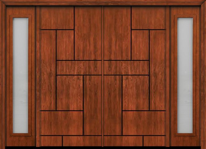 WDMA 112x80 Door (9ft4in by 6ft8in) Exterior Cherry Contemporary Lines Groove Double Entry Door Sidelights
