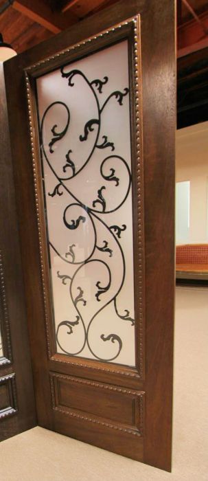 WDMA 38x80 Door (3ft2in by 6ft8in) Exterior Mahogany Door One Sidelight Leaf Scrollwork Ironwork Glass Attributes Table