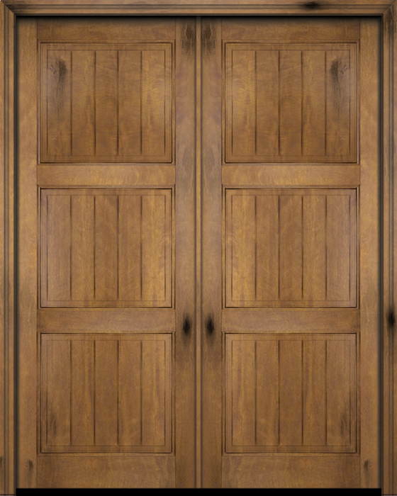 WDMA 48x80 Door (4ft by 6ft8in) Interior Swing Mahogany 3 Panel V-Grooved Plank Rustic-Old World Exterior or Double Door