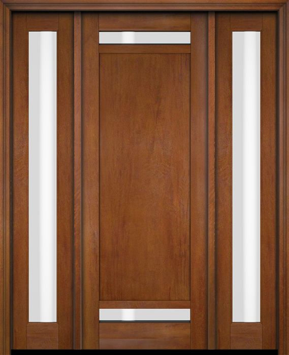 WDMA 52x96 Door (4ft4in by 8ft) Exterior Swing Mahogany 112 Windermere Shaker Single Entry Door Sidelights
