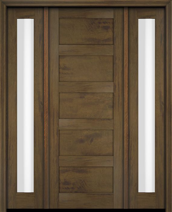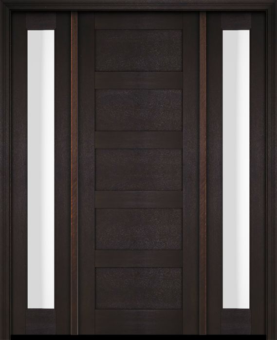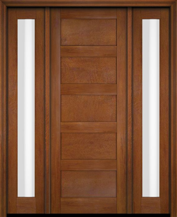 WDMA 52x96 Door (4ft4in by 8ft) Exterior Swing Mahogany Modern 5 Flat Panel Shaker Single Entry Door Sidelights