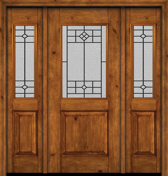 WDMA 54x80 Door (4ft6in by 6ft8in) Exterior Cherry Alder Rustic Plain Panel 1/2 Lite Single Entry Door Sidelights Beaufort Glass