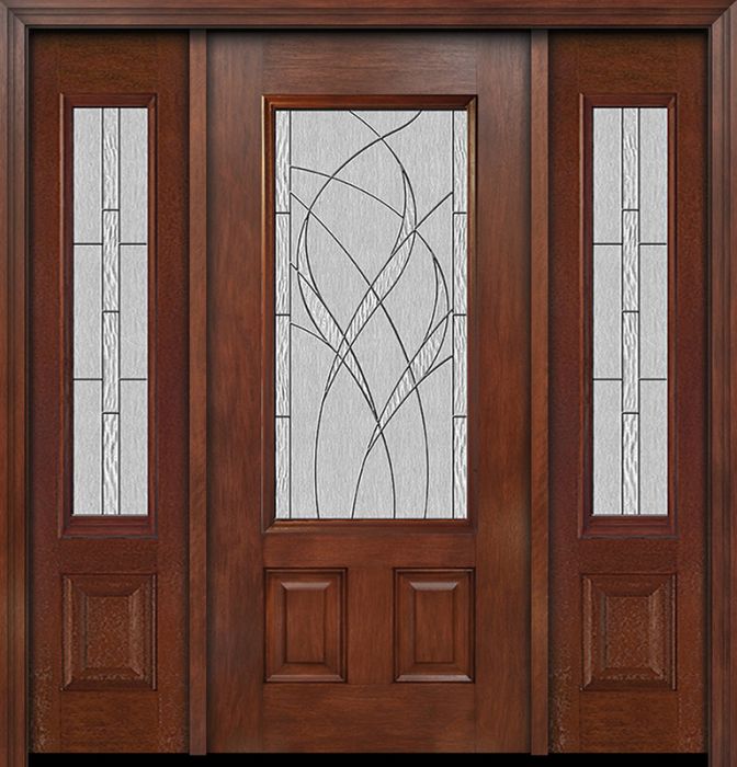 WDMA 54x80 Door (4ft6in by 6ft8in) Exterior Mahogany 3/4 Lite Two Panel Single Entry Door Sidelights Waterside Glass