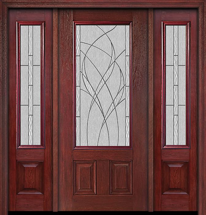 WDMA 54x80 Door (4ft6in by 6ft8in) Exterior Cherry 3/4 Lite Two Panel Single Entry Door Sidelights Waterside Glass