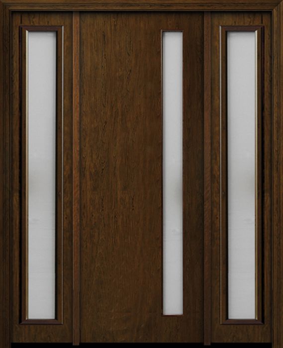 WDMA 54x96 Door (4ft6in by 8ft) Exterior Cherry 96in Contemporary One Vertical Lite Single Fiberglass Entry Door Sidelights