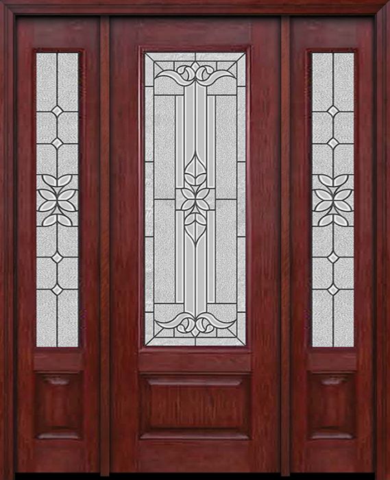 WDMA 54x96 Door (4ft6in by 8ft) Exterior Cherry 96in 3/4 Lite Single Entry Door Sidelights Cadence Glass