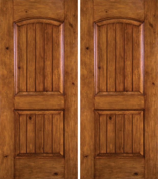 WDMA 60x80 Door (5ft by 6ft8in) Exterior Knotty Alder Alder Rustic V-Grooved Panel Double Entry Door