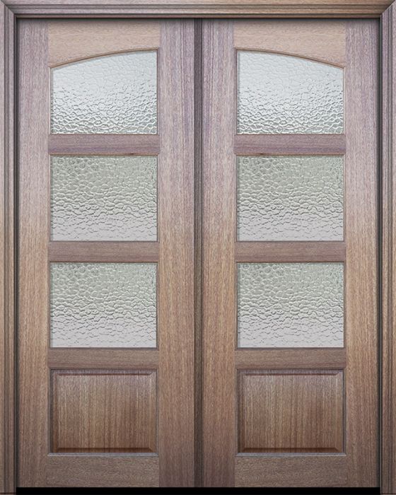 WDMA 60x96 Door (5ft by 8ft) Exterior Mahogany 96in Double 3 Lite Continental TDL Arch Lite DoorCraft Door w/Textured Glass