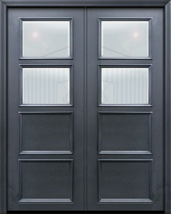 WDMA 60x96 Door (5ft by 8ft) Exterior 96in ThermaPlus Steel 2 Lite 2 Panel Continental Double Door w/ Beveled Glass