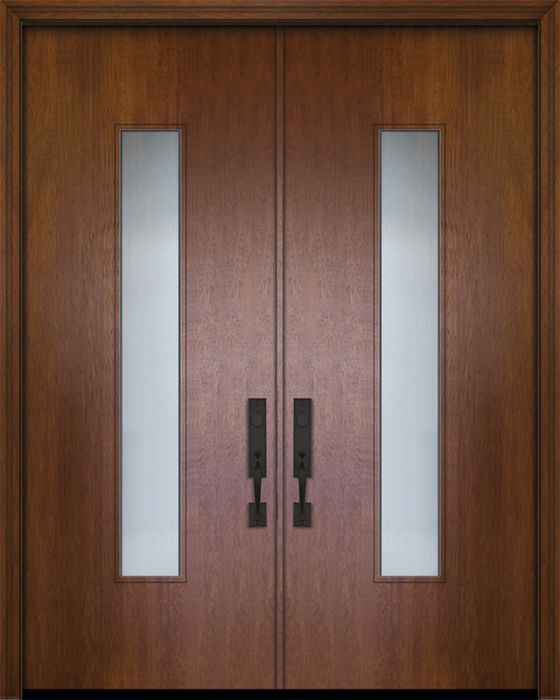 WDMA 64x96 Door (5ft4in by 8ft) Exterior Mahogany 96in Double Malibu Solid Contemporary Door w/Textured Glass