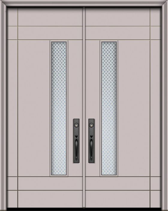 WDMA 64x96 Door (5ft4in by 8ft) Exterior Smooth 96in Double Santa Barbara Solid Contemporary Door w/Metal Grid