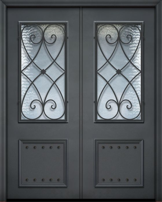 WDMA 64x96 Door (5ft4in by 8ft) Exterior 96in ThermaPlus Steel Charleston 1 Panel 2/3 Lite Double Door
