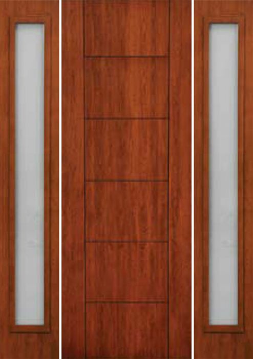 WDMA 66x96 Door (5ft6in by 8ft) Exterior Cherry 96in Contemporary Lines Two Vertical Grooves Single Entry Door Sidelights