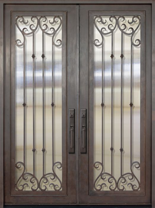 WDMA 72x96 Door (6ft by 8ft) Exterior 96in Valencia Full Lite Double Wrought Iron Entry Door