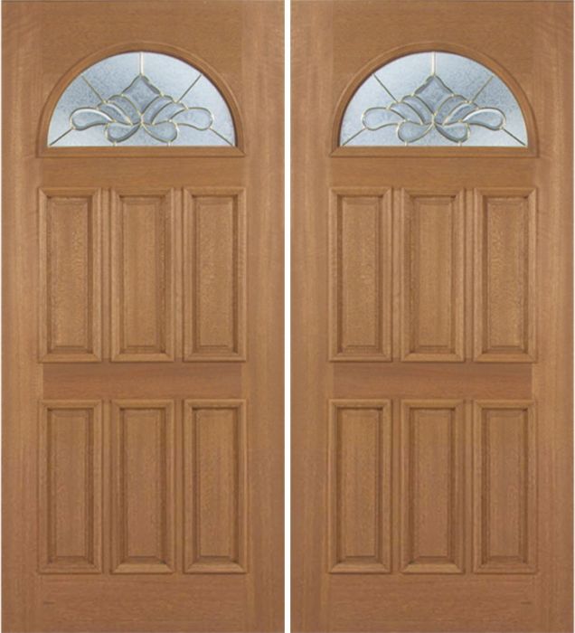 WDMA 84x80 Door (7ft by 6ft8in) Exterior Mahogany Jefferson Double Door w/ BO Glass