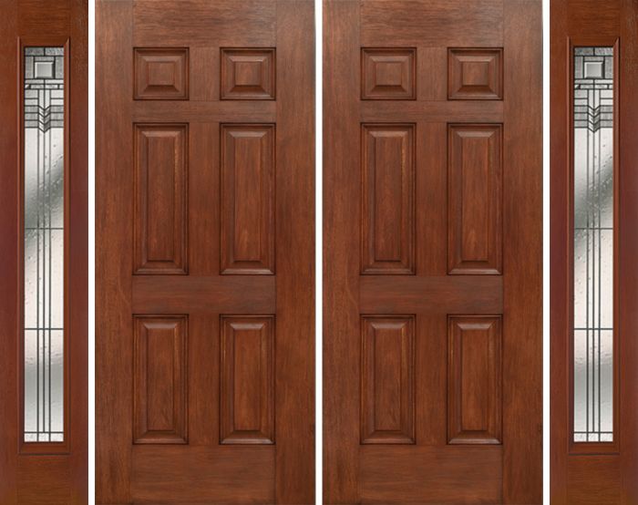 WDMA 84x80 Door (7ft by 6ft8in) Exterior Mahogany Six Panel Double Entry Door Sidelights Full Lite KP Glass