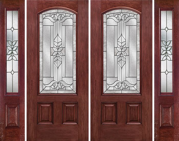 WDMA 88x80 Door (7ft4in by 6ft8in) Exterior Cherry Camber 3/4 Lite Two Panel Double Entry Door Sidelights CD Glass