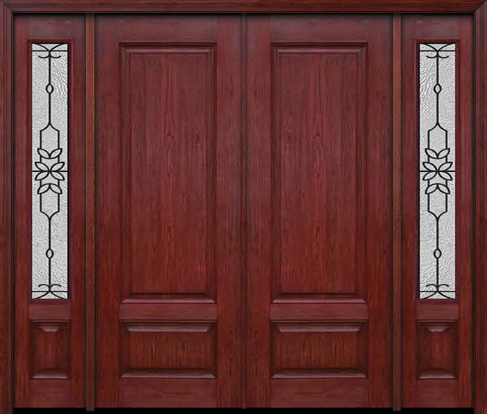 WDMA 88x96 Door (7ft4in by 8ft) Exterior Cherry 96in Two Panel Double Entry Door Sidelights Mediterranean Glass