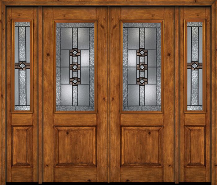 WDMA 88x96 Door (7ft4in by 8ft) Exterior Knotty Alder 96in Alder Rustic Plain Panel 2/3 Lite Double Entry Door Sidelights Mission Ridge Glass