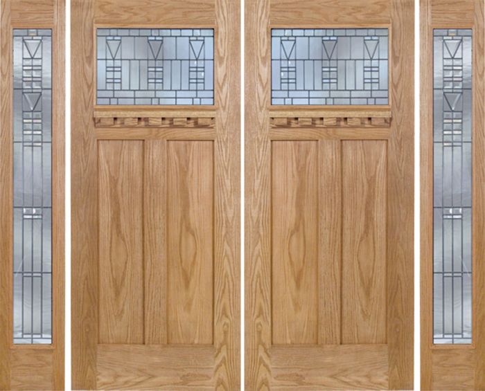WDMA 96x80 Door (8ft by 6ft8in) Exterior Oak Pearce Double Door/2 Full-lite side w/ B Glass