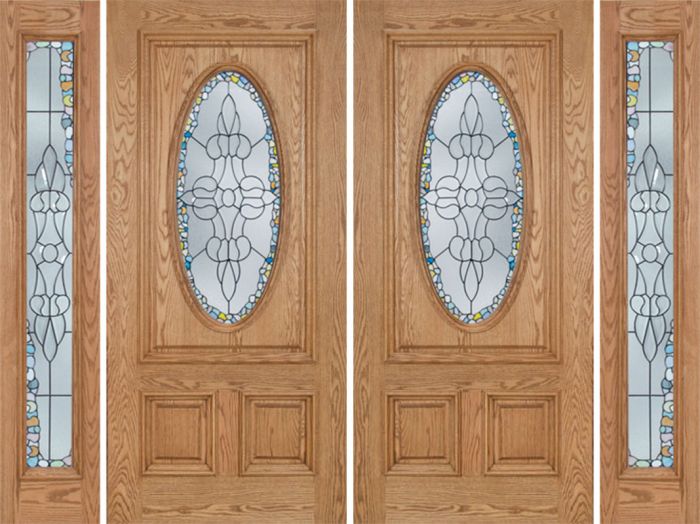 WDMA 96x80 Door (8ft by 6ft8in) Exterior Oak Watson Double Door/2side w/ Tiffany Glass