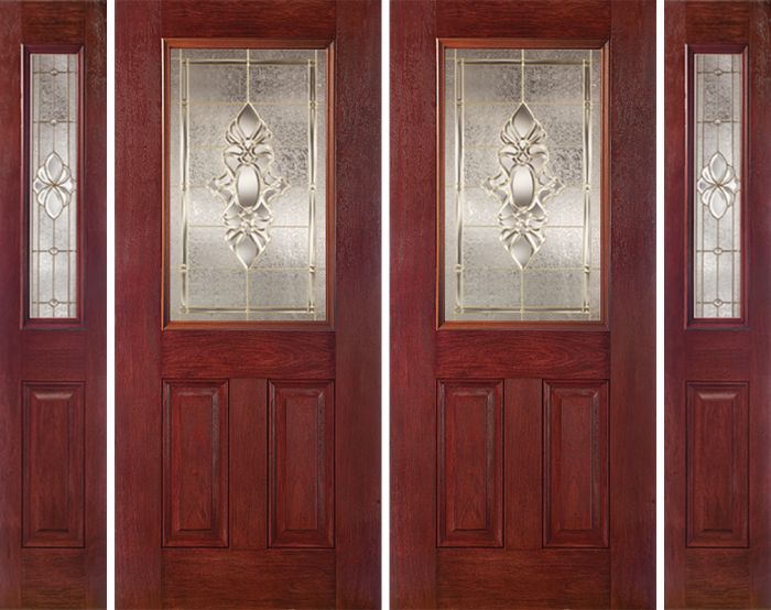 WDMA 96x80 Door (8ft by 6ft8in) Exterior Cherry Half Lite 2 Panel Double Entry Door Sidelights HM Glass