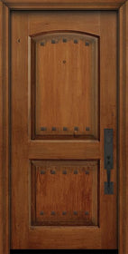 WDMA 32x80 Door (2ft8in by 6ft8in) Exterior Knotty Alder IMPACT | 80in 2 Panel Arch V-Grooved Door with Clavos
