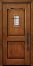 WDMA 32x80 Door (2ft8in by 6ft8in) Exterior Knotty Alder IMPACT | 80in 2 Panel Arch V-Grooved Door with Speakeasy