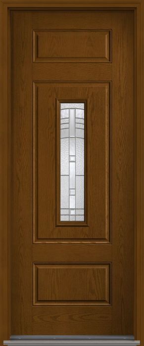 WDMA 34x96 Door (2ft10in by 8ft) Exterior Oak Maple Park 8ft Center Lite 3 Panel Fiberglass Single Door HVHZ Impact