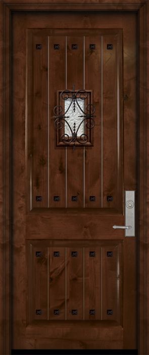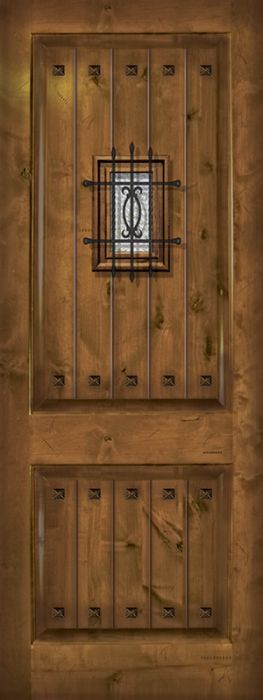 WDMA 42x96 Door (3ft6in by 8ft) Exterior Knotty Alder 42in x 96in 2 Panel V-Grooved Estancia Alder Door with Speakeasy / Clavos