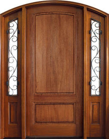 WDMA 50x80 Door (4ft2in by 6ft8in) Exterior Mahogany Trinity 2 Panel Impact Single Door/2 SDL Sidelight Arch Top