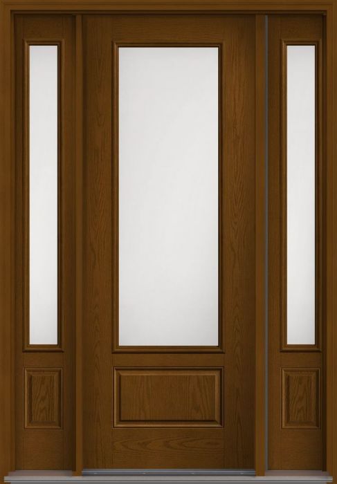 WDMA 58x96 Door (4ft10in by 8ft) Patio Oak Satin Etch 8ft 3/4 Lite 1 Panel Fiberglass Exterior Door 2 Sides