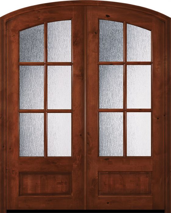 WDMA 72x96 Door (6ft by 8ft) Exterior Knotty Alder 96in Double 6 Lite Arch Top TDL Estancia Alder Door w/Textured Glass
