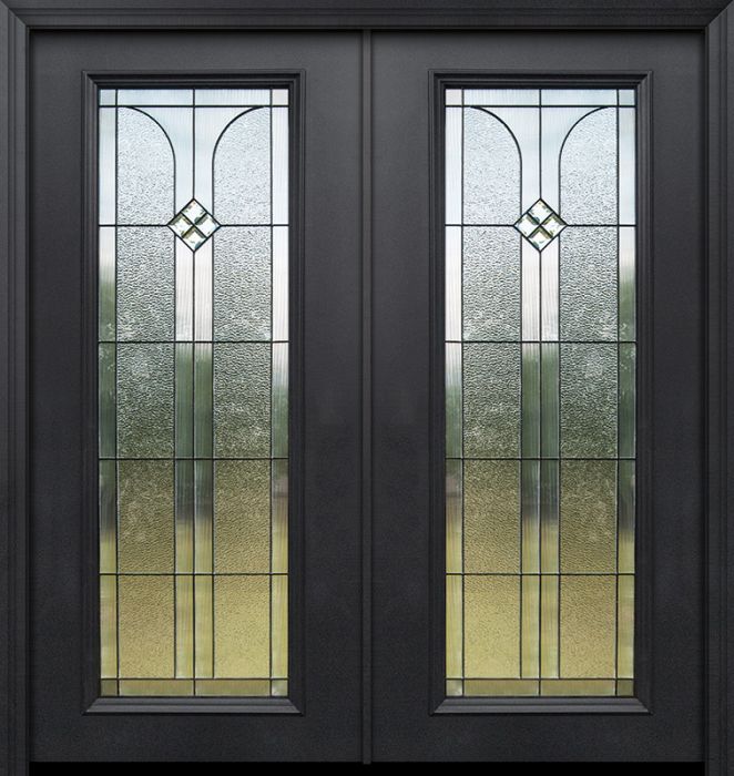 WDMA 64x80 Door (5ft4in by 6ft8in) Exterior 80in ThermaPlus Steel Cantania Full Lite Double Door
