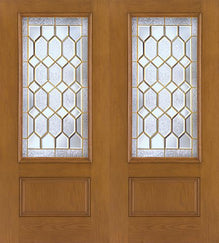 WDMA 64x80 Door (5ft4in by 6ft8in) Exterior Oak Fiberglass Impact Door 3/4 Lite Avonlea 6ft8in Double