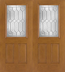 WDMA 68x80 Door (5ft8in by 6ft8in) Exterior Oak Fiberglass Impact Door 3/4 Lite Kensington 6ft8in Double