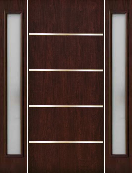WDMA 70x80 Door (5ft10in by 6ft8in) Exterior Cherry Contemporary Stainless Steel Bars Single Fiberglass Entry Door Sidelights FC675SS